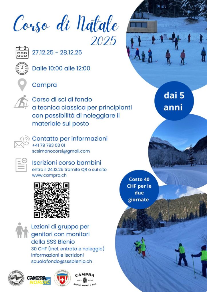 Corso di Natale Corso di sci di fondo a tecnica classica per bambini dai 5 anni di età. Formulario di iscrizione + Aggiungi a Google Calendar + iCal / Outlook export 00 giorni 00 ore 00 minuti 00 secondi Data 27 Dic 25 Ora 10:00 - 12:00 Luogo Campra Categoria eventi Organizzatore Sci club Simano - Settore corsi Telefono 079 793 03 01 Email scsimanocorsi@gmail.com Condividi questo evento